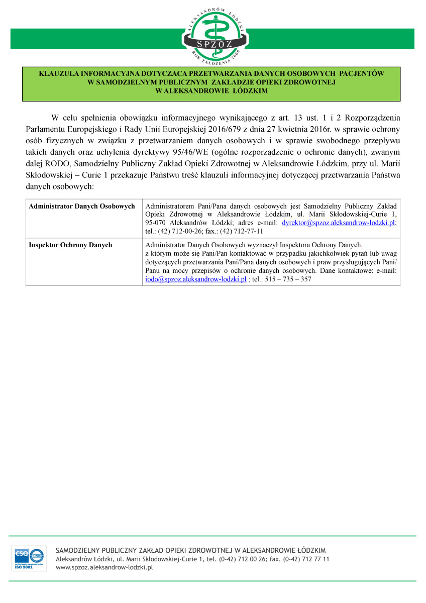 U W A G A Informujemy, że w dniu 12.02.2026 r. w Filii w Bełdowie 43A nie będzie lekarza pediatry. Zapraszamy do SP ZOZ przy ul. Marii Skłodowskiej-Curie 1. Za utrudnienia przepraszamy.