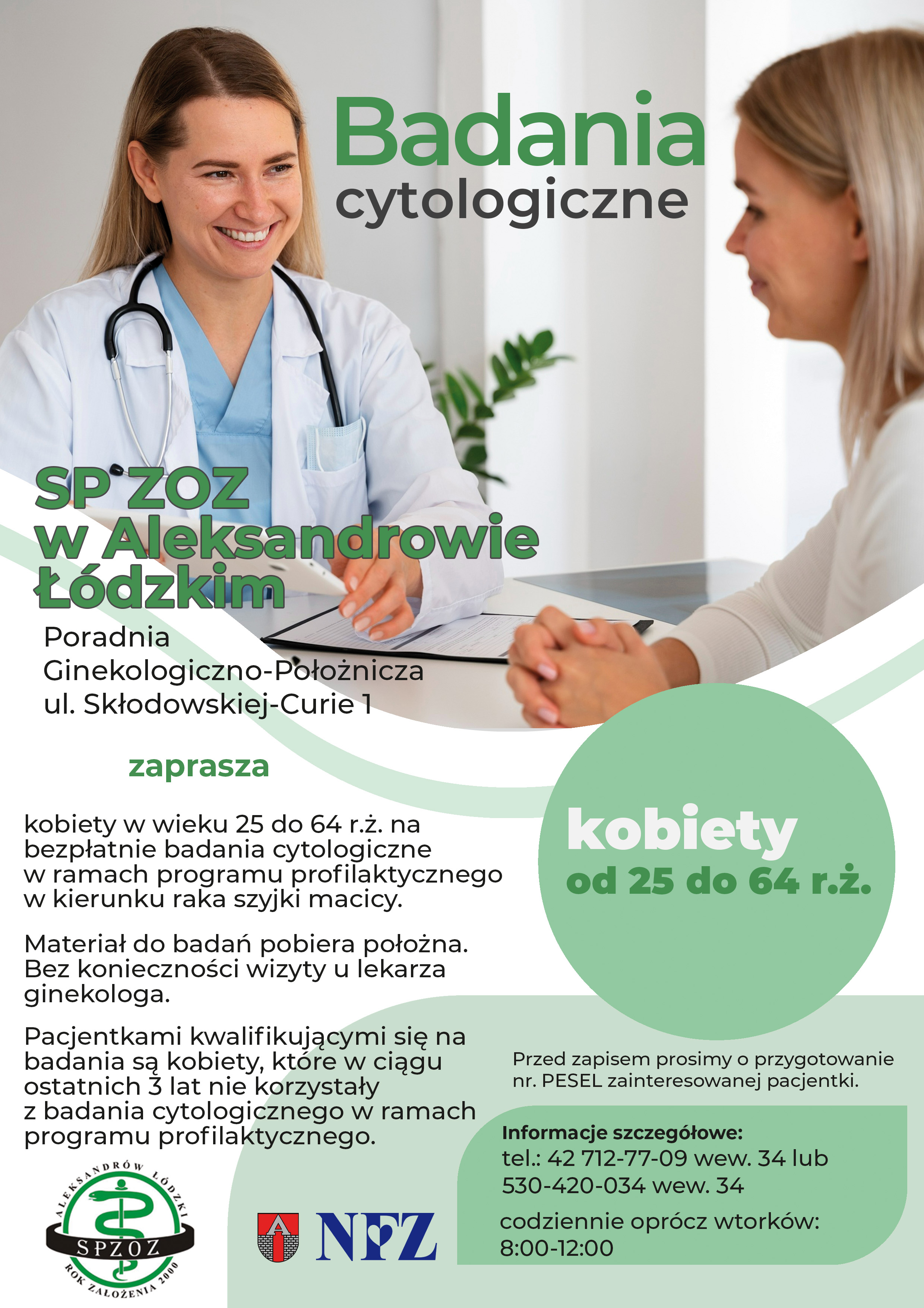 Bezpłatne badania mammograficzne w Aleksandrowie Łódzkim .