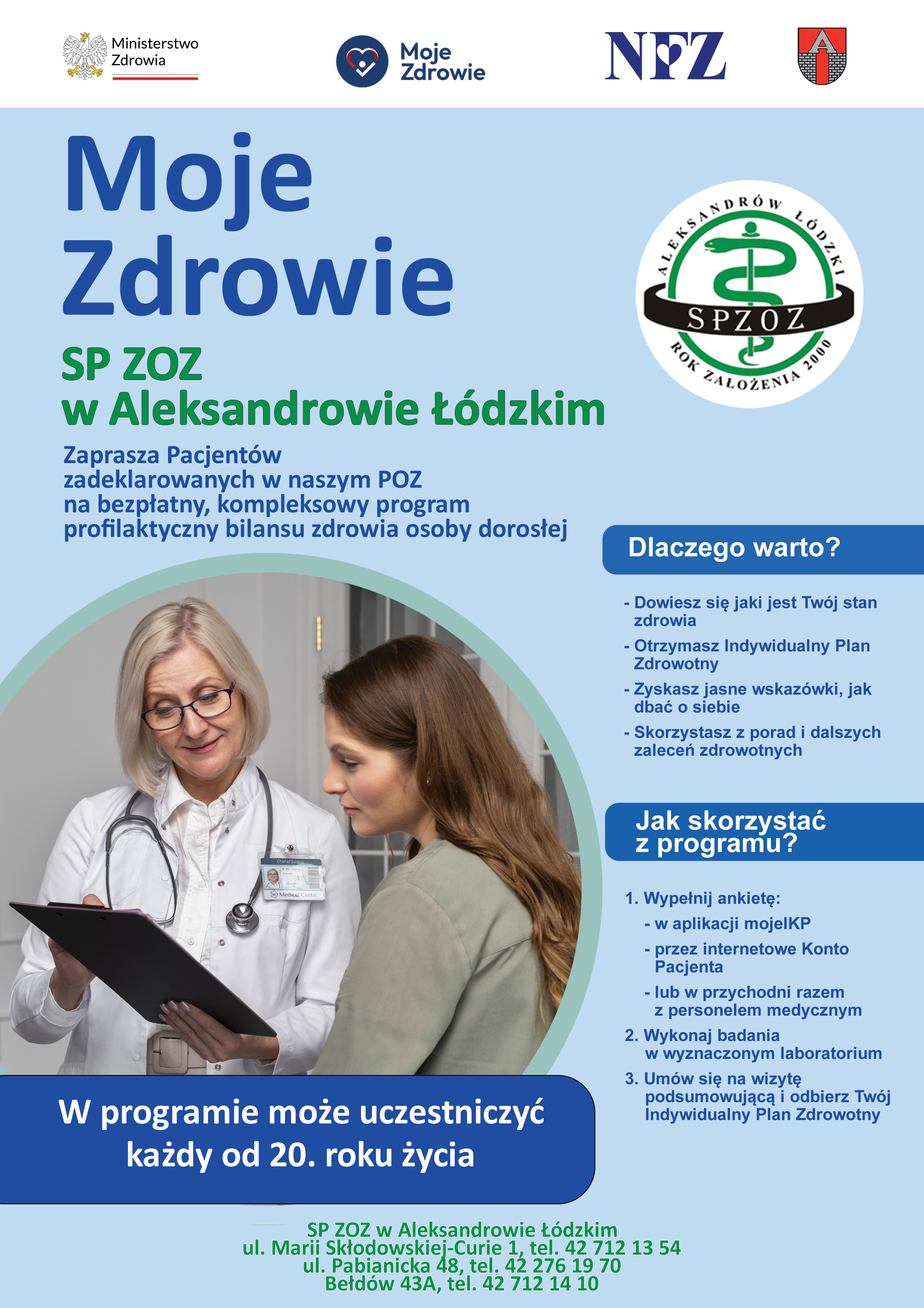 Przychodnia SPZOZ w Aleksandrowie Łódzkim zaprasza do udziału w wyjątkowym projekcie badawczym GENERATION-A, realizowanym przez Uniwersytet Łódzki – Centrum Biologii Cyfrowej i Nauk Biomedycznych – Biobank Łódź®.